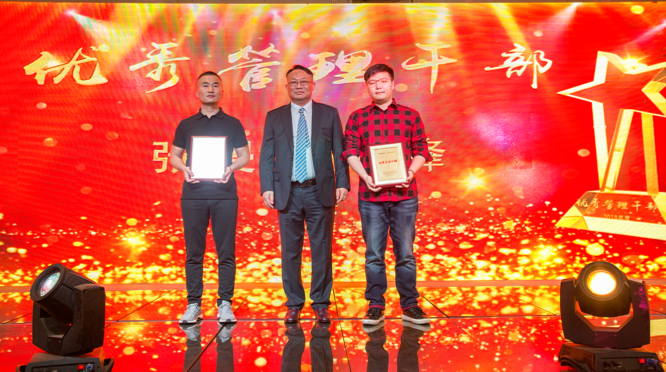 董事长顾东先生为2019年度优秀管理干部及优秀员工颁奖并合影留念。